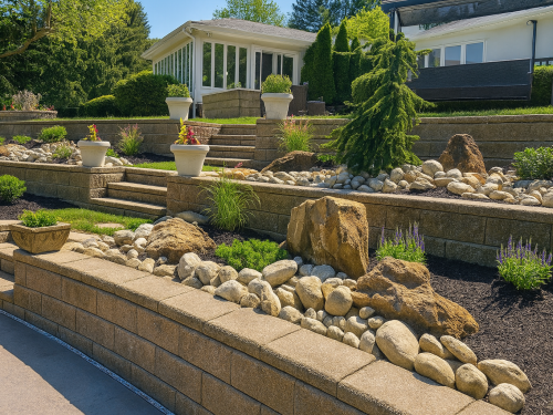 Stonework brings both beauty and purpose to your outdoor living space. At Landscaping By Craig, we design and build custom retaining walls, natural stone walls, and stone steps that not only define and shape your landscape but also add character and durability. Using natural stones and expert craftsmanship, our team creates structures that blend seamlessly with the environment while solving practical needs like grading, erosion control, and elevated garden beds. Whether you’re looking to add dimension, create functional outdoor areas, or highlight your property with timeless stone features, our stonework and retaining walls provide the perfect balance of strength, function, and lasting elegance.