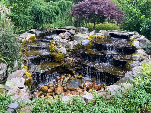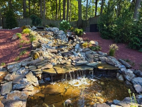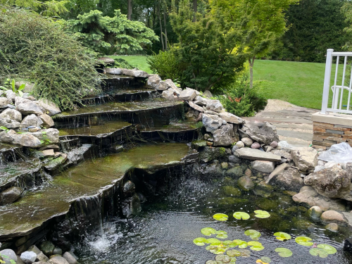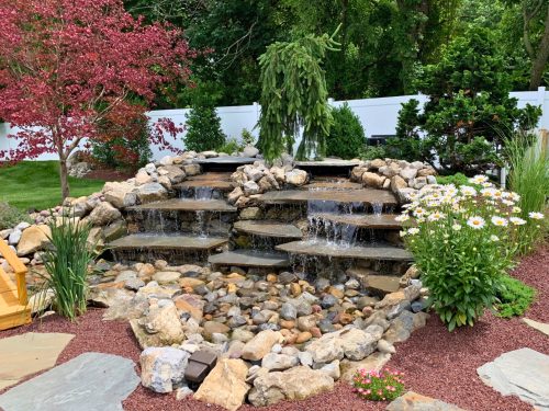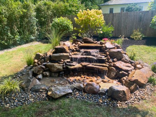Water Features add sound and movement to a landscape. A pond creates a focal point to your backyard. A waterfall blends very well into a natural background to add ambiance to your outdoor visions.
